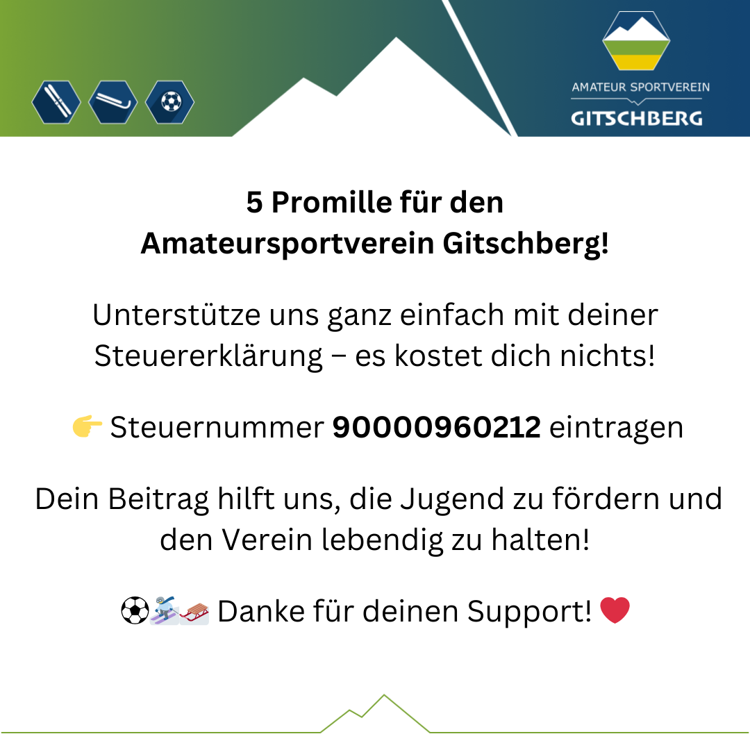 Spende 5 Promille deiner Steuer an den Amateursportverein Gitschberg!